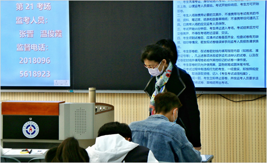 考试期间,党委书记陈晓军,副校长宋莹、宁晓娟在教务处、招生与就业指导处负责人陪同下,前往考生资格审核和考试现场,检查指导工作,并看望一线工作人员。