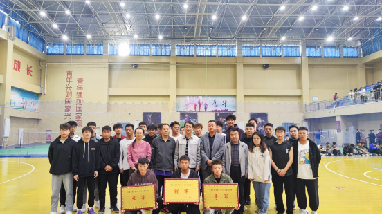 各班运动员在赛场上奋力比拼,通过激烈角逐,最终2022级机械制造及自动化1班、2022级智能网联汽车技术班、2023级汽车检测与维修技术2班分别获得冠、亚、季军。10月18日,在学校体育馆举行颁奖仪式,学院党总支书记杨志国、专职党总支副书记买学斌、学工办主任李志军分别为获胜班级颁奖。