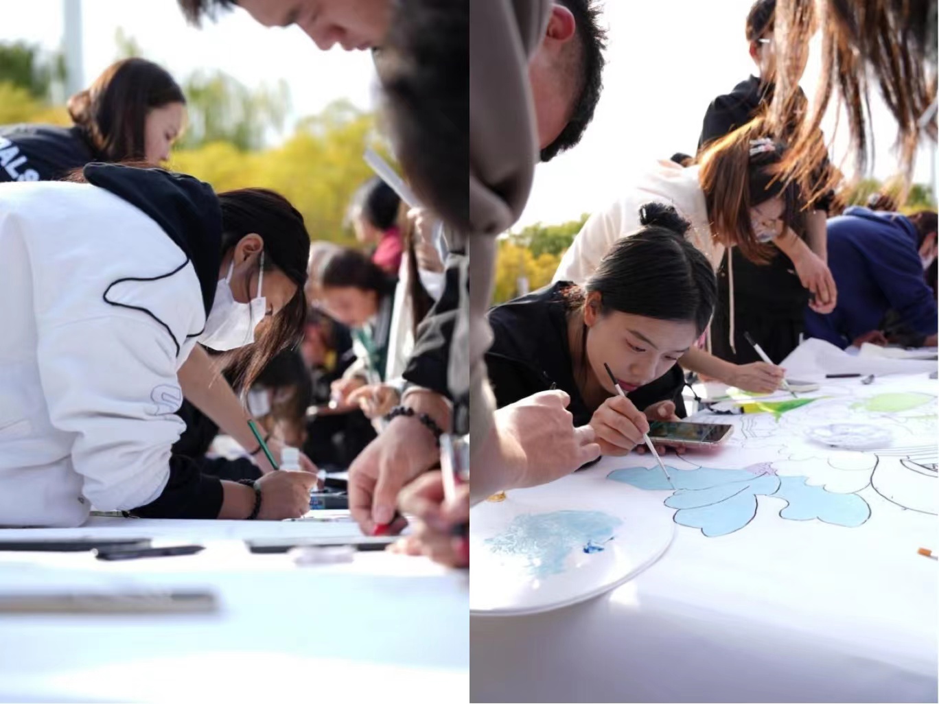 本次活动以生态文明建设为主题。各班级代表队在画卷两侧,从构思画面到勾勒线条,再到上色,挥舞着手中的画笔。20余米的画卷上,既有多姿多彩的青山绿水、奇妙的海洋生物,也有“低碳环?!薄按竺拦ど?绿色校园”的呼吁。2022级计算机网络2班的张国浩同学说:“大学生是生态文明建设的生力军,作为一名入党积极分子,我们更应该在日常的生活、学习、娱乐中投身到环境?;?、生态文明建设之中”。