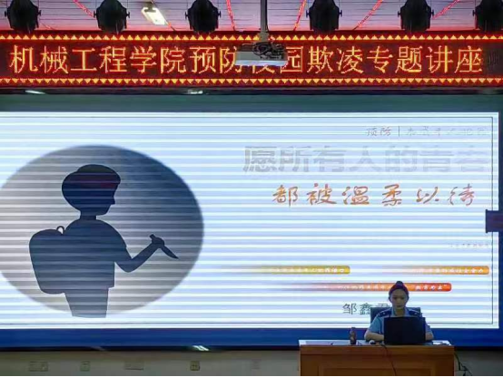 为落实学院党委“六大行动”,切实维护校园安全,筑牢安全屏障,保障大学生身心健康,预防校园欺凌事件的发生,提高学生安全防范意识和自我保护能力。5月9日下午,机械工程学院联合保卫处举办了预防校园欺凌专题讲座。本次讲座由银川市永宁县公安局邹警官主讲,机械工程学院300名学生参加讲座。