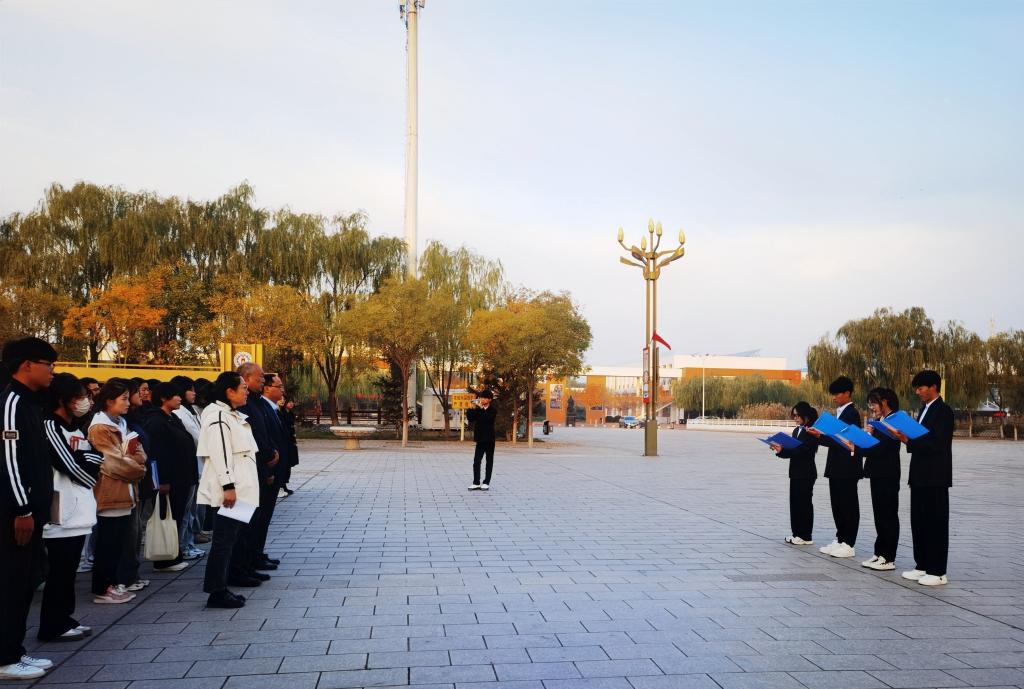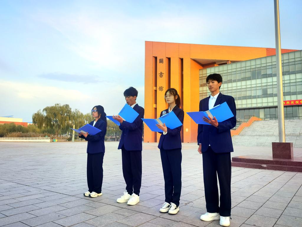 国歌响起,伴着旭日东升的太阳,国旗护卫队将国旗缓缓升起。学生代表以饱满的热情朗诵了《赓续红色血脉,传承长征精神》,表达了对先辈英烈的缅怀和对长征精神的敬仰,同时也表达了自己将继承并发扬长征精神的决心。