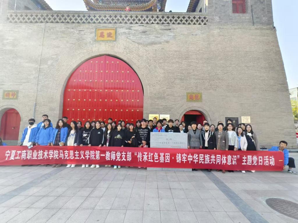 10月23日下午,马克思主义学院第一教师党支部与银川市文物管理处党支部以“传承红色基因 铸牢中华民族共同体意识”为主题开展联合主题党日暨“行走的思政课”活动。学校党委副书记宁晓娟、银川市文化旅游广电局党组成员、副局长强朝辉等人应邀出席,银川市文物管理处全体干部职工、马克思主义学院教师及学生代表约70人参加,会议由银川市文化旅游广电局党工委专职副书记王新春主持。