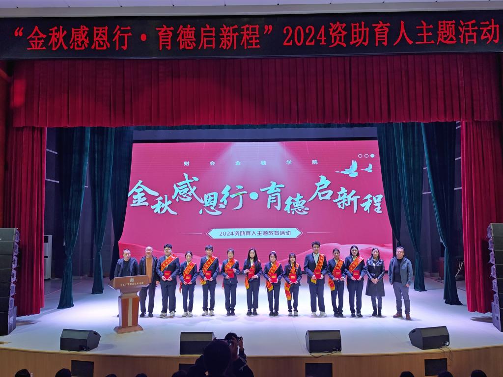 11月14日,财会金融学院开展2024年“金秋感恩行,育德启新程”学生资助育人主题教育活动颁奖典礼暨文艺展演活动。财会金融学院院长史成泽、副书记吴??怼⒏痹撼ひ断?、张捷以及获奖学生代表等参加活动。