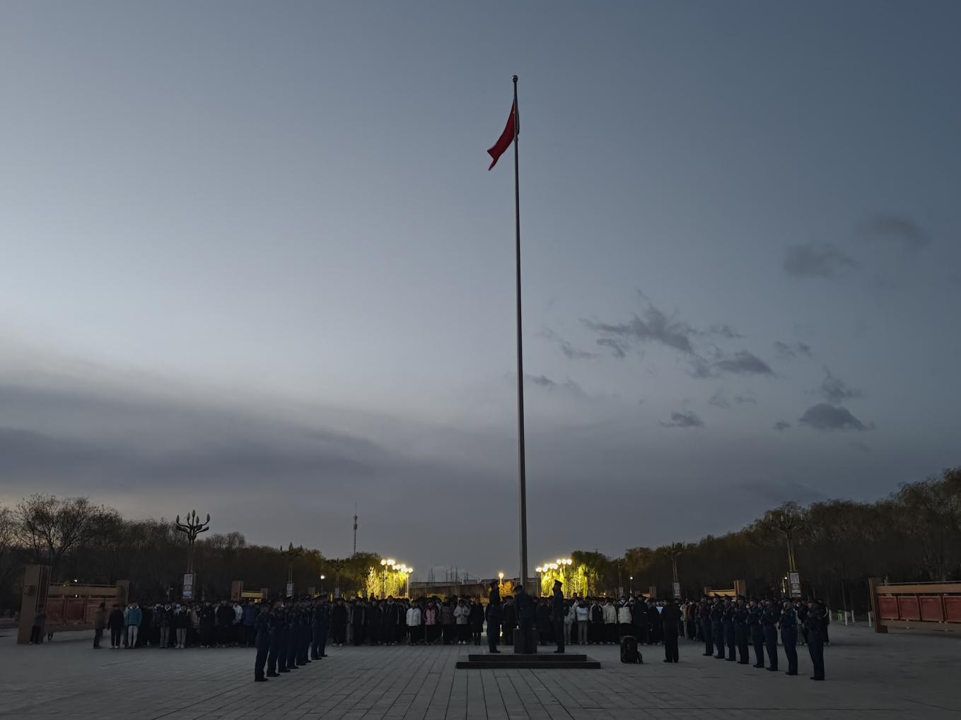 升旗仪式于7:20准时开始,国旗班士官生迈着矫健的步伐将五星红旗护卫入场,在雄壮的国歌声中,鲜艳的五星红旗冉冉升起。