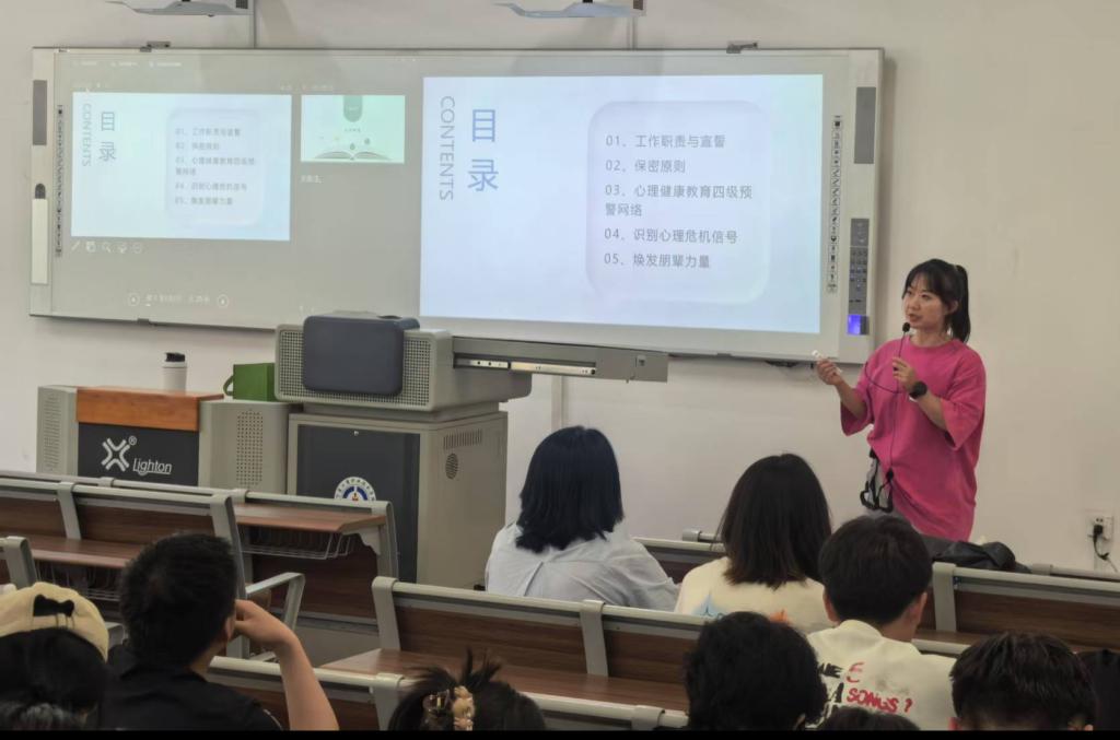 宿舍是学生日常生活的重要场所,宿舍心理委员能够及时发现并干预同学的心理问题,对于营造健康、和谐的校园氛围具有关键作用。此次培训内容丰富多样,涵盖了宿舍信息员工作职责、保密原则、识别心理?;藕诺任甯龇矫?,重点讲述了常见心理问题的识别方法,通过实际案例分析,帮助宿舍心理信息员们从言语、行为、情绪等方面判断同学是否存在心理困扰的技巧,指导宿舍心理信息员在与同学交流时如何建立信任关系,更好地理解同学的内心感受。