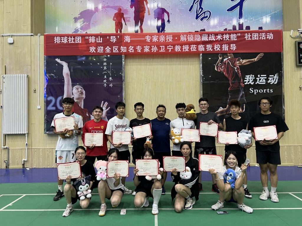 活动中,孙卫宁教授从基础的发球、接球、传球,到难度较高的扣球、拦网技巧,再到复杂的战术配合,循序渐进地帮助学员提升能力。在训练过程中,学员们热情高涨,认真听从教练指导,反复练习技术动作,针对每个学员的问题进行一对一指导,纠正动作偏差,讲解技术要点。随后,社团成员进行了分组对抗赛,以“新老成员搭档”形式组织友谊赛,通过实战演练强化战术配合,激发竞争意识。并在对抗赛中,评选出来了“最佳球员”“最佳攻手”“最佳防守人”等个人奖项,并对获得荣誉的同学进行了颁奖。