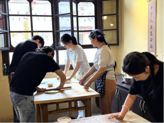 千揉蒿子面,一脉匠心传。“一叶蒿草入面香,千年技艺代代传?!倍釉泵亲呓壹斗且糯谢?,了解传统美食蒿子面的历史,并在非遗传承人的指导下亲身体验蒿子面的制作过程。从和面开始,到揉面、切面,体会到了亲力亲为带来的幸福感,也深深感受到了丝路饮食文化的深厚底蕴。