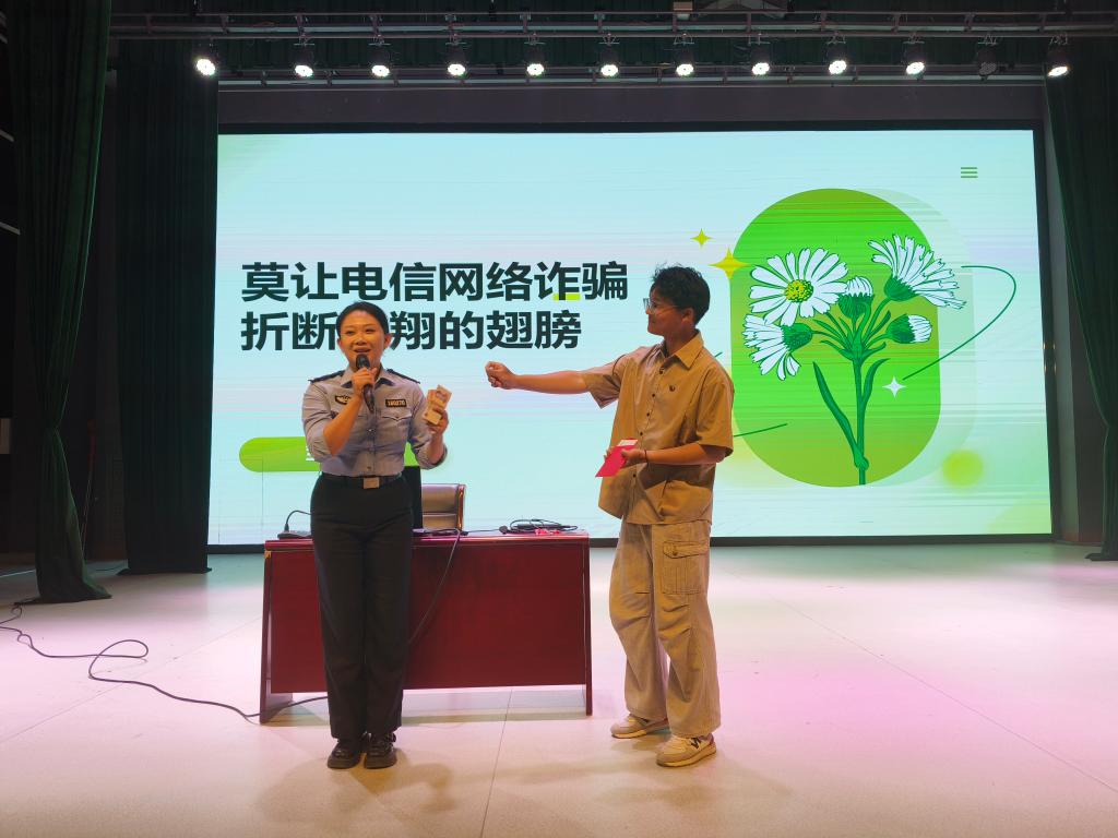 为进一步增强学生防范电信诈骗的意识和能力,保障学生财产安全,9月13日晚,在学校保卫处的大力支持下,商贸学院在学校小剧场举办了一场以“莫让电信网络诈骗折断飞翔的翅膀”为主题的安全教育讲座。本次讲座邀请了永宁县公安局反诈中心民警邹鑫君担任主讲,2025级全体新生参加了此次活动。