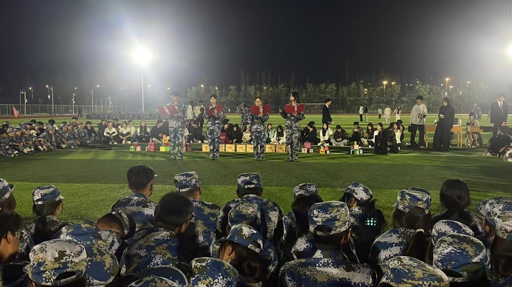 为深入贯彻学?!耙徽臼健毖缜ㄉ枰螅罨褡逋沤峤浇逃?,铸牢中华民族共同体意识,营造积极健康、团结和谐的校园氛围,9月17日下午七点,商贸学院于学校小操场举办“庆中秋迎国庆”操场联谊晚会,全体2025级新生参与其中。