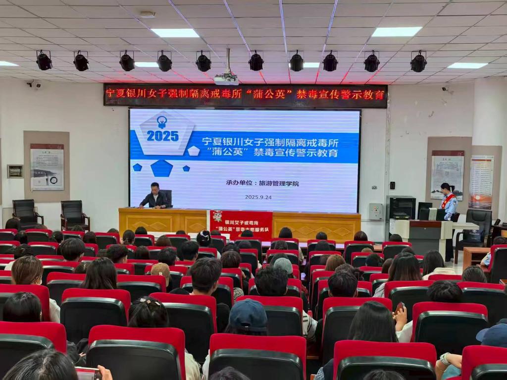 为进一步增强学生禁毒意识,筑牢校园防毒屏障,9月24日下午,人文教育学院与旅游管理学院联合举办了一场以“远离毒品,珍爱生命”为主题的禁毒教育专题讲座。本次活动特邀宁夏银川女子强制隔离戒毒所一大队中队长、“蒲公英”禁毒志愿服务队宣讲团成员罗列霞警官担任主讲人。