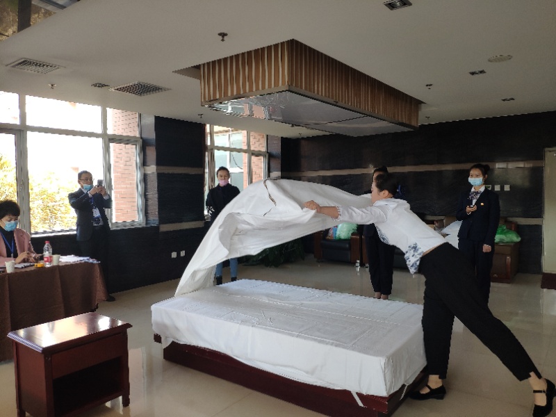 此次比赛分为中餐宴会摆台与客房中式铺床两个赛项,分别对参赛选手从现场技能实操,仪容仪表展示,英语问答、专业理论四个方面进行考核,参赛选手充分准备,为在座的每位评委展示了良好的职业素养和风采。经过激烈的角逐,共选出一等奖一名,二等奖一名,三等奖两名。宁夏工商职业技术学院团队以优秀的专业能力获得第一名的好成绩。