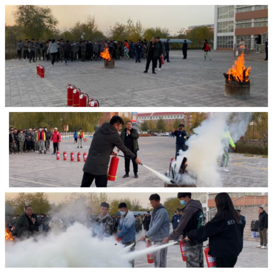 随后,任老师通过“一提、二拔、三压、四喷”,现场演示如何使用灭火器,并进行了现场演示,并让2020级新生同学们亲自体验,教会大家如何扑救初期火势。