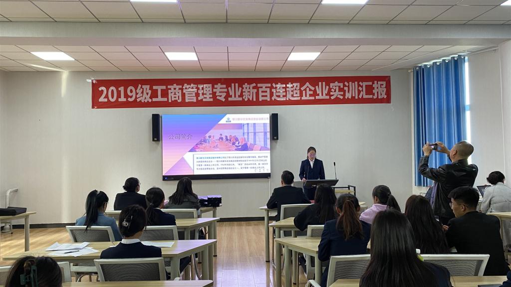 工商教研室在实践结束后,于2020年10月12日下午组织了企业实践总结汇报。新百连超人力总监宋娇和人资经理王麦燕等参加了汇报会,为实践优秀学生颁发了奖状与奖品,对同学们积极的工作态度和认真负责的工作作风给予了肯定和认可。