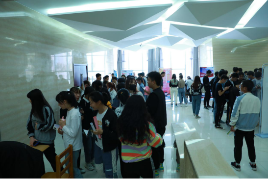 洽谈会现场,2018级学生与用人单位积极交流、投递简历,场面热烈有序,气氛紧张和谐。招聘会结束后,部分实习学生与用人单位初步达成了就业意向。