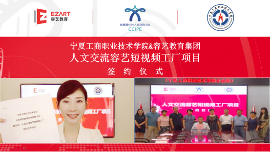 7月10日上午,由教育部人文交流中心和容艺教育联合推出的人文交流容艺短视频工厂项目在线立项签约仪式在5号楼二楼会议室成功召开。作为全国首批立项的27所共建院校之一(27所院校中高职院校14所、本科院校13所),宁夏工商职业技术学院是唯一入选的宁夏高职院校。