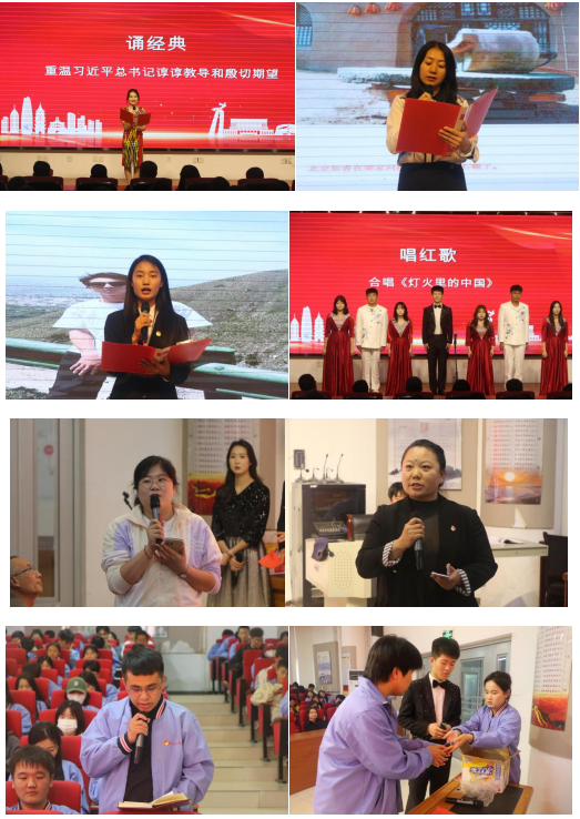 活动共分为六个环节进行。看视频环节,通过观看沙画《谆谆教诲暖人心习近平总书记和大学生朋友们在一起!》,全体师生重温习近平总书记与大学生朋友们的温暖瞬间;通过欣赏学院2023年暑期“三下乡”宣传片,沿着总书记足迹,走进闽宁、感受闽宁,服务乡村振兴。诵经典环节,聆听总书记对青年的寄语,感受总书记的谆谆嘱托。讲故事环节,教师党支部书记郭丽老师为大家生动讲述习近平总书记七年知青岁月中刻苦学习的故事;马晓菲同学讲述优秀毕业生马永辉成长为一名优秀员工的历程。唱红歌环节,学生演员为大家精彩合唱《灯火里的中国》。谈感悟环节,在场师生踊跃发言,他们结合学习、工作实际畅谈所思所想。送礼物环节,团学干部为在场师生赠送本次活动纪念品。