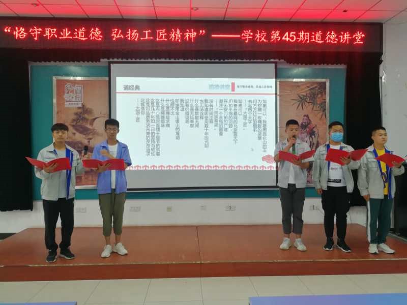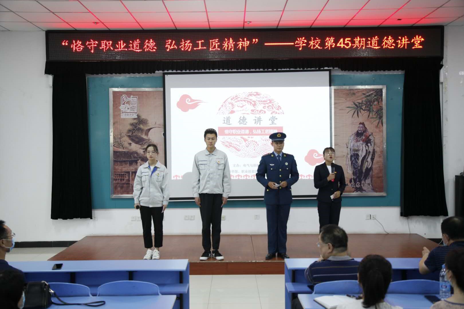 根据学校2020年度道德讲堂工作安排,由电气与控制工程学院党总支承办,职业技能鉴定所、图书馆、信息网络中心协办的学校第45期道德讲堂,于6月10日下午在清风园如期举办。本次讲堂以“恪守职业道 ,弘扬工匠精神”为主题,近200名师生共同参加了活动。