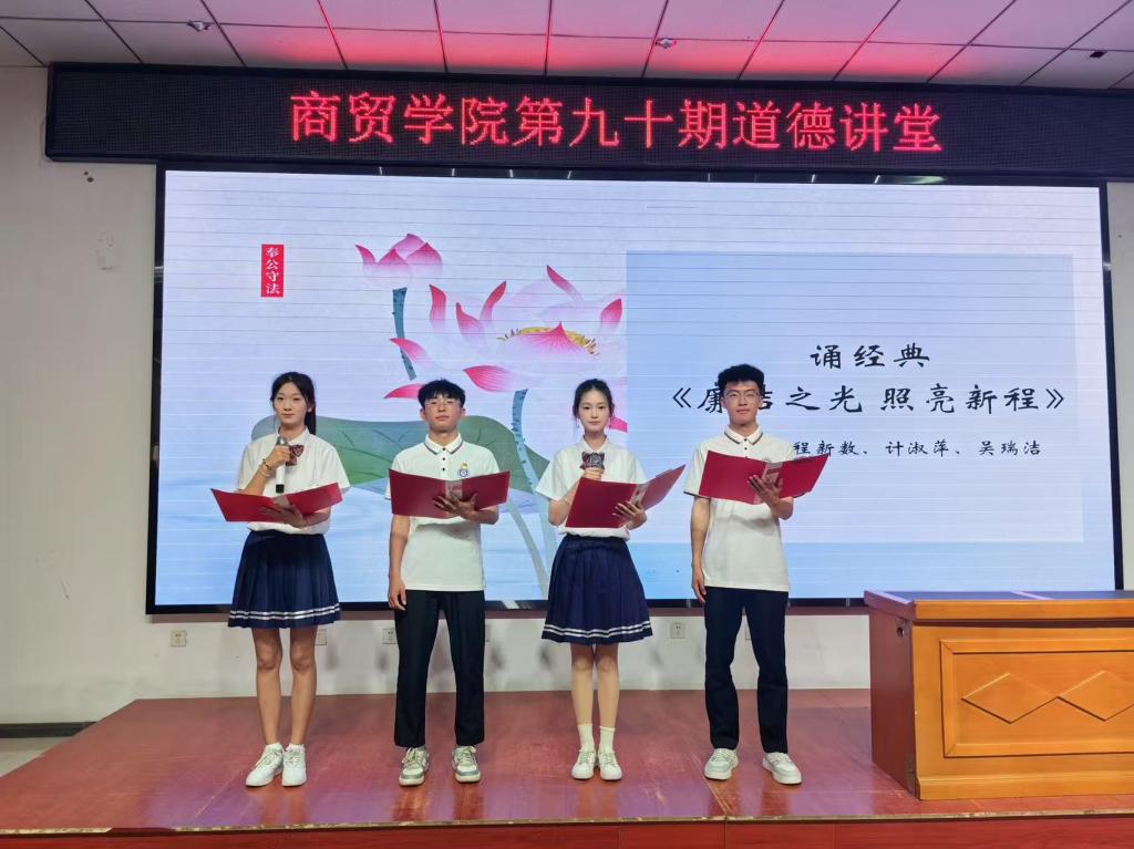 为扎实推进校园廉洁文化建设,弘扬崇德尚廉的校园风尚,5月21日下午,商贸学院在清风园开展第90期“道德讲堂”活动。