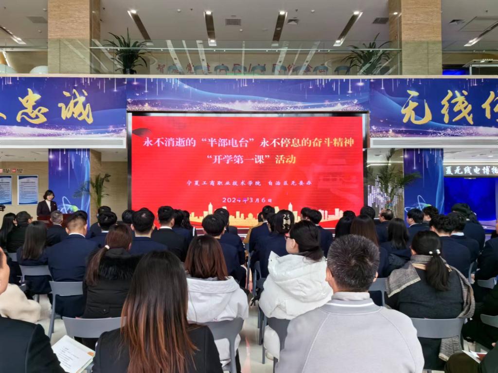 2024年3月6日,校馆再联手,共同举办“永不消逝的‘半部电台’,永不停息的奋斗精神”开学第一课,切实推进“大思政课”建设走深走实,提升育人效果?;疃校Jιü劭茨奈尴叩绮┪锕菪臀⑿颓榫熬纭夺酷伤暝隆?,深入了解了无线电技术在人类文明演进过程中发挥的积极作用。在行走的思政课这一环节,同学们聆听了“人类与通信”“中国无线电发展历程”“半部电台与红色电波”“宁夏无线电发展历程”“守护机密与安全的电波卫士”等与人类发展息息相关的无线电故事。馆中 500 多件展品,1000多件图片影像资料以及虚拟现实(VR)、3D 全息投影等现代科技手段的运用,打造了一堂集“科学性、知识性、趣味性和艺术性”于一体的“多元化思政课”。思政课教师白璐发挥专业优势,以“崇尚精神是中华民族的优秀传统”为题,讲述中华民族五千多年的发展长河中,自主创新精神、自我奋斗精神相伴始终,讲述了无线电事业在党的革命斗争历史中起到的关键独特作用,讲述了中华民族伟大复兴的新征程中科技自立自强的重要意义,进一步引导青年学生“传承红色基因、汲取革命力量、弘扬奋斗精神”,以正确党史观、历史观、价值观走好人生成长道路,为强国建设、民族复兴贡献青春力量。