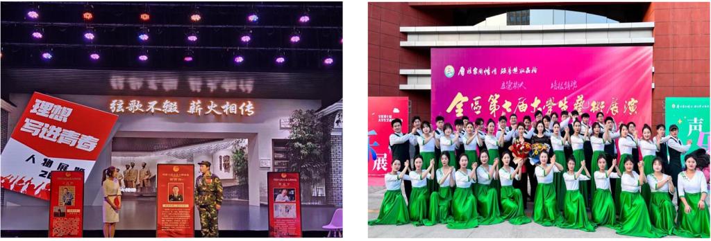 深化五育并举,实施校园文化品牌创建工程。以铸牢中华民族共同体意识为主线,组织学生社团开展系列社团活动,形成“一中心、双指导、四平台、四阵地”的学生社团管理新模式。承办全区第七届大学生艺术展演、全区“希望杯”全区大学生校园歌手比赛,举办非遗文化进校园、高雅艺术进校园、社团文化艺术节等活动,提升学生综合素质,丰富校园文化建设,打造“大美工商”校园文化品牌活动。学校被教育部评为“全国第七届大学生艺术展演优秀组织单位”。